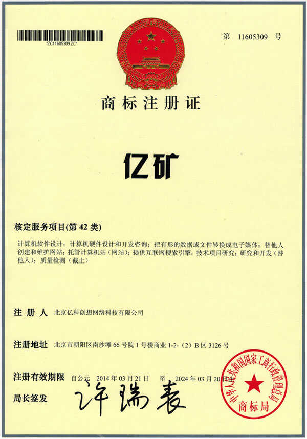 近日,山东中煤集团旗下子公司山东亿煤机械装备制造有限公司和北京亿科创想网络科技有限公司分别成功获得“亿煤”和“亿矿”商标注册证。